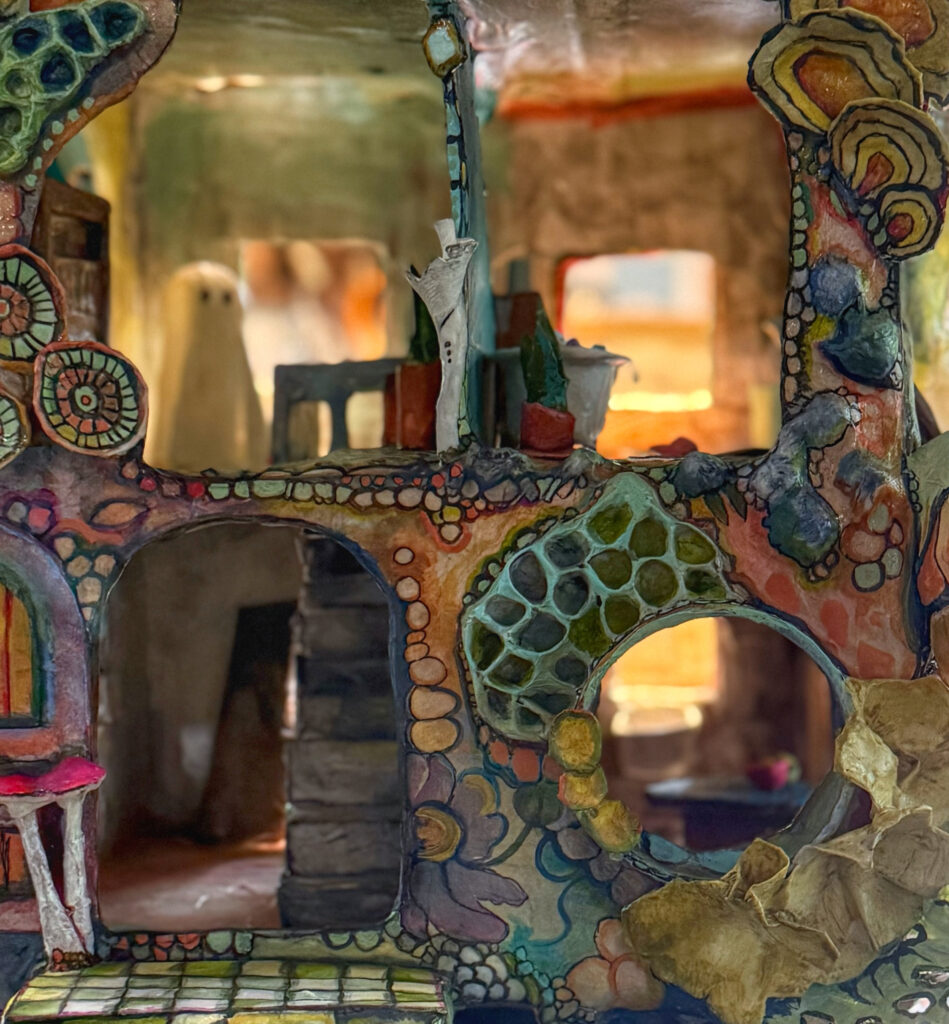 Last year I started making weird little house sculptures. They are not literal representations of my home or studio but are inspired by them and the surreal period in my life these past few years as I’ve adjusted to all of the changes and challenges after my husband’s death. They are made from recycled materials. They are wonky and weird. My progress on them has been slow. Some days I love them. Some days I think they are ridiculous. They are an odd cross between doll houses and spooky dioramas. I keep thinking about Frances Glessner Lee crime scene models. There is no forensic evidence or crime scene reenactment going on in my little houses. There is nothing precise about my construction. I’ve moved forward into the narrative to include ghosts and plants and wildlife taking over neglected structures. This work is about memory and failed expectations but also about the way the heart and mind and planet heal themselves after trauma. These houses are inspired by my little Ghost House, of course, but also other derelict houses. I’ve always found it interesting/poetic when nature starts to reclaim spaces where humans once lived. I’ve been fascinated by the houses in Pripyat, the abandoned city in Ukraine near the Chernobyl Nuclear Power Plant for years. As the powers that should not be continue to do damage in this country, I am compelled to make these weird works. We shall see how this project progresses. It’s kind of funny that I’m building a representation of something haunted and broken and falling apart. I know it sounds gloomy but I’m finding the work gratifying and even a little amusing.